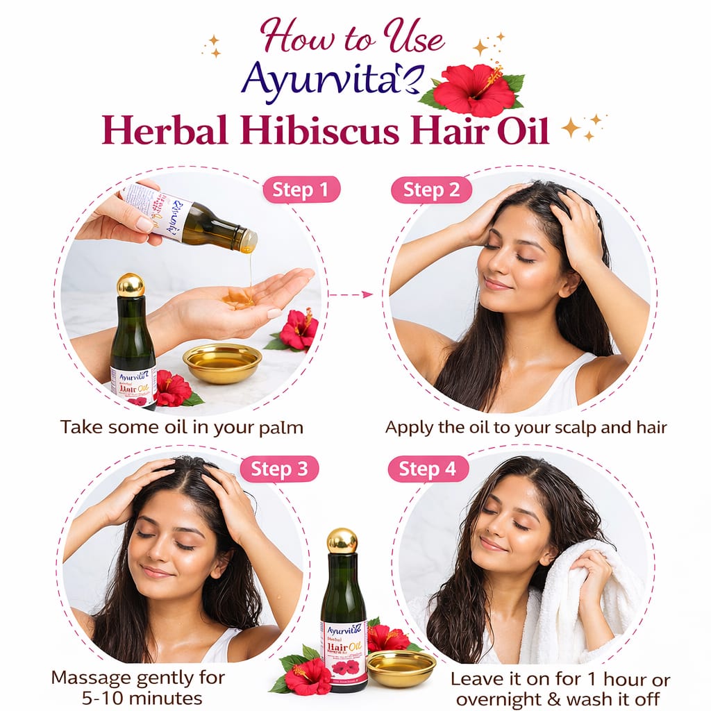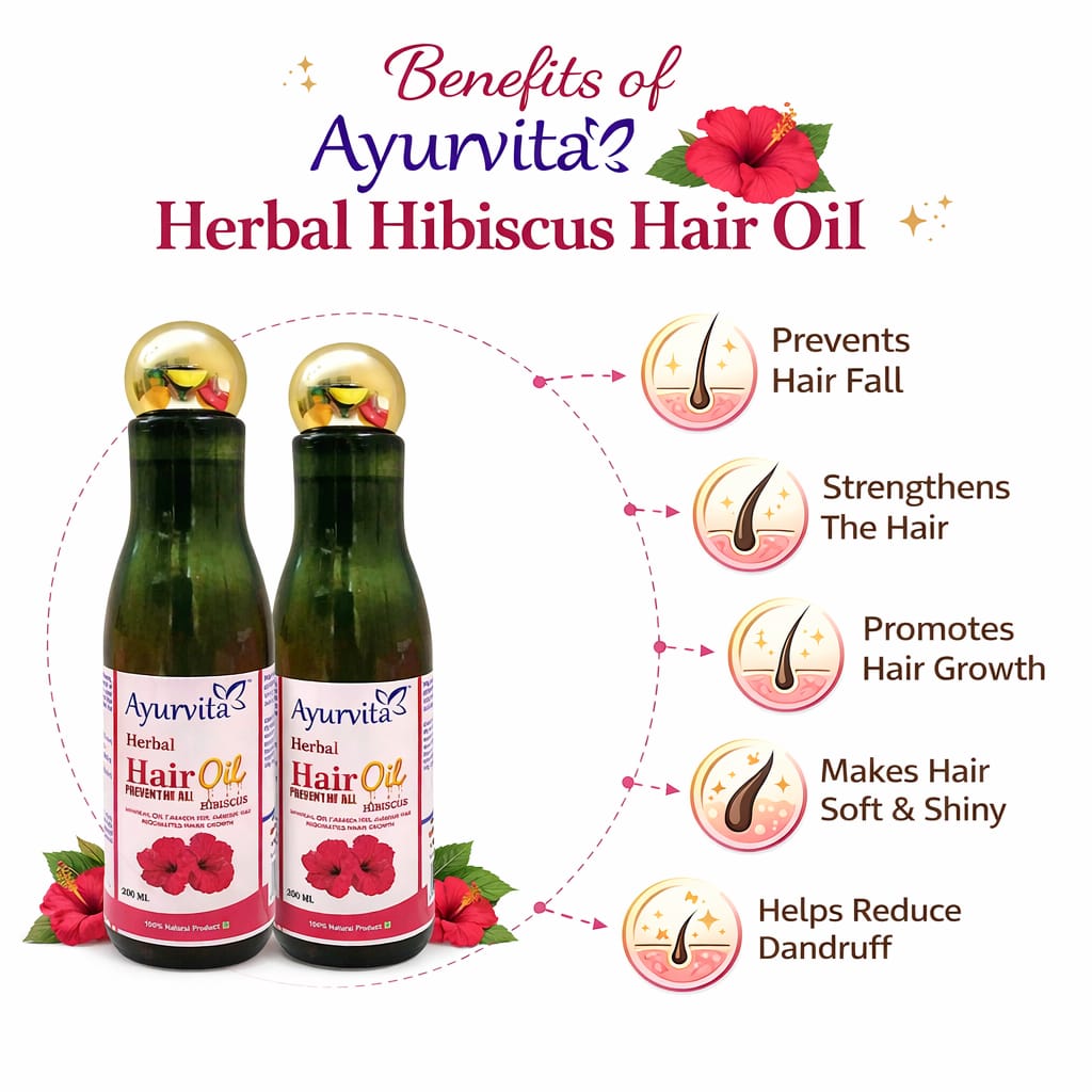 Nourish your hair naturally with Ayurvita Herbal Hibiscus Hair Oil, enriched with the goodness of hibiscus known for promoting strong, healthy, and shiny hair. This herbal formula helps nourish the scalp, strengthen hair roots, and improve overall hair texture.